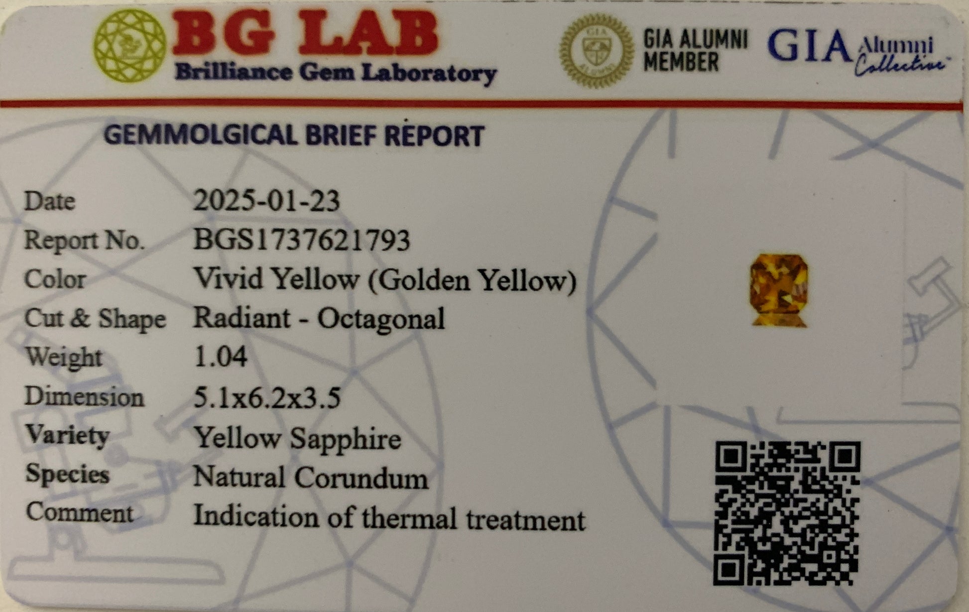 At 1.04 carats, this premium-quality Yellow Sapphire is perfectly sized for high-end jewelry designs, from bespoke engagement rings to statement pendants. Its origin from Sri Lanka (Ceylon)—one of the world’s most respected sources for fine sapphires—adds significant prestige and value. With indications of standard thermal treatment, this gemstone displays optimal color enhancement while maintaining its natural corundum purity.