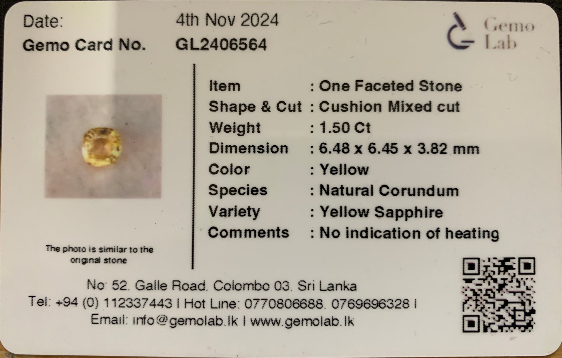 Natural Yellow Sapphire – Premium Unheated Cushion Mixed-Cut Gemstone (1.50 ct)